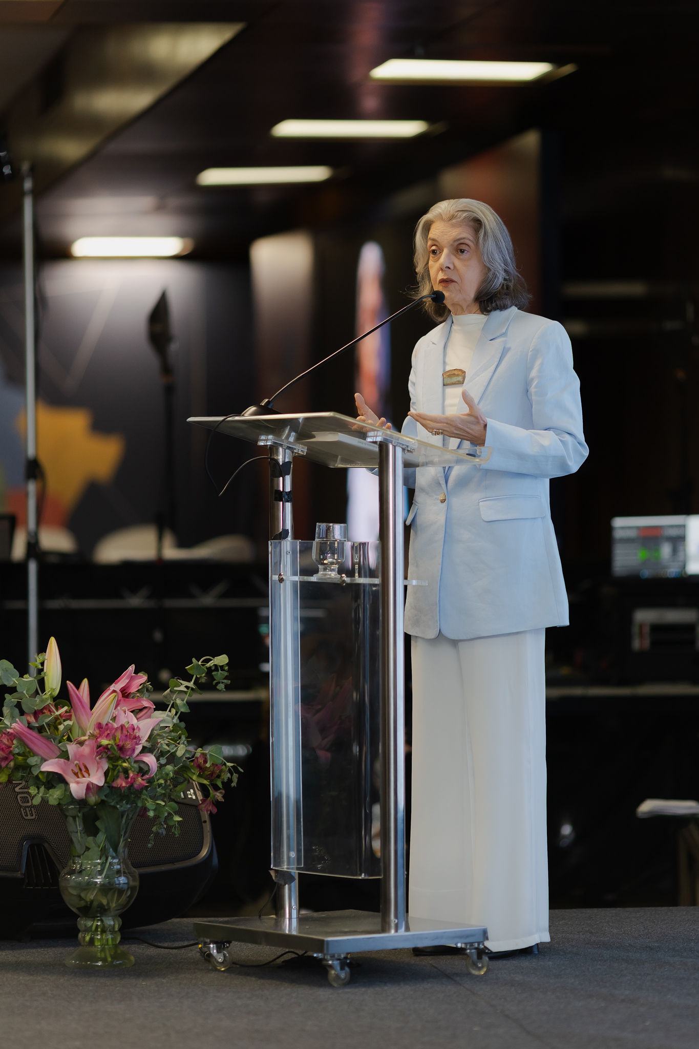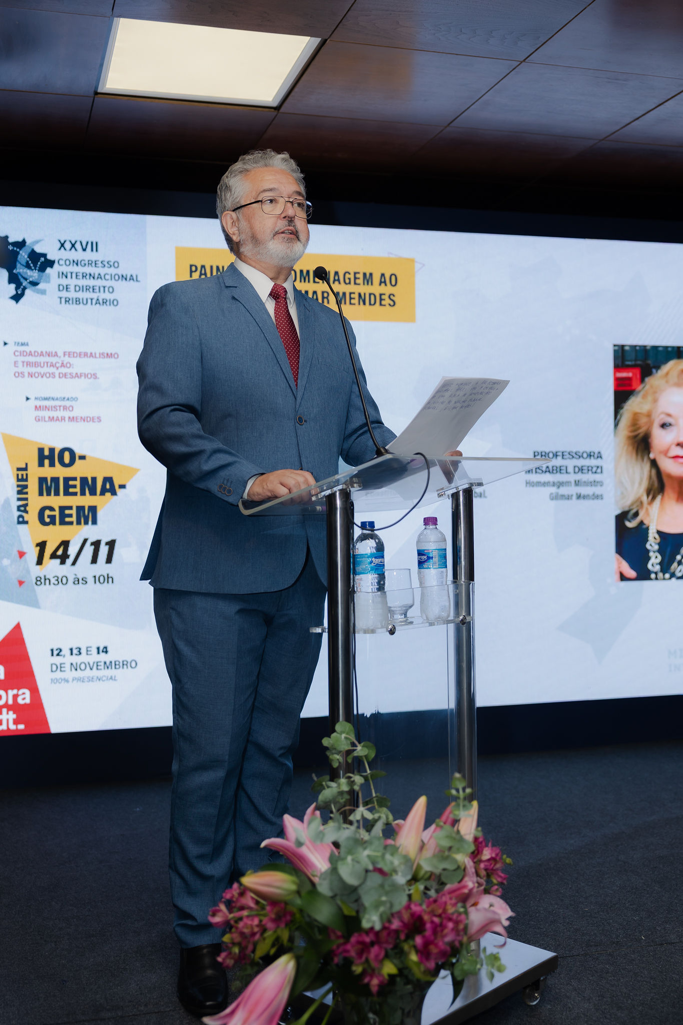 A homenagem foi conduzida pela presidente da Abradt, professora Misabel Derzi, que ressaltou o papel histórico do ministro na defesa das liberdades públicas e na mediação federativa. Segundo ela, “o ministro Gilmar Mendes continua sendo o grande baluarte da segurança, da liberdade e do Estado de Direito”. Derzi afirmou ainda que Mendes “interfere positivamente nos destinos do país” e o definiu como “intimorato, íntegro, bravo”, lembrando decisões que, segundo ela, “impuseram um basta à escalada policialesca”.