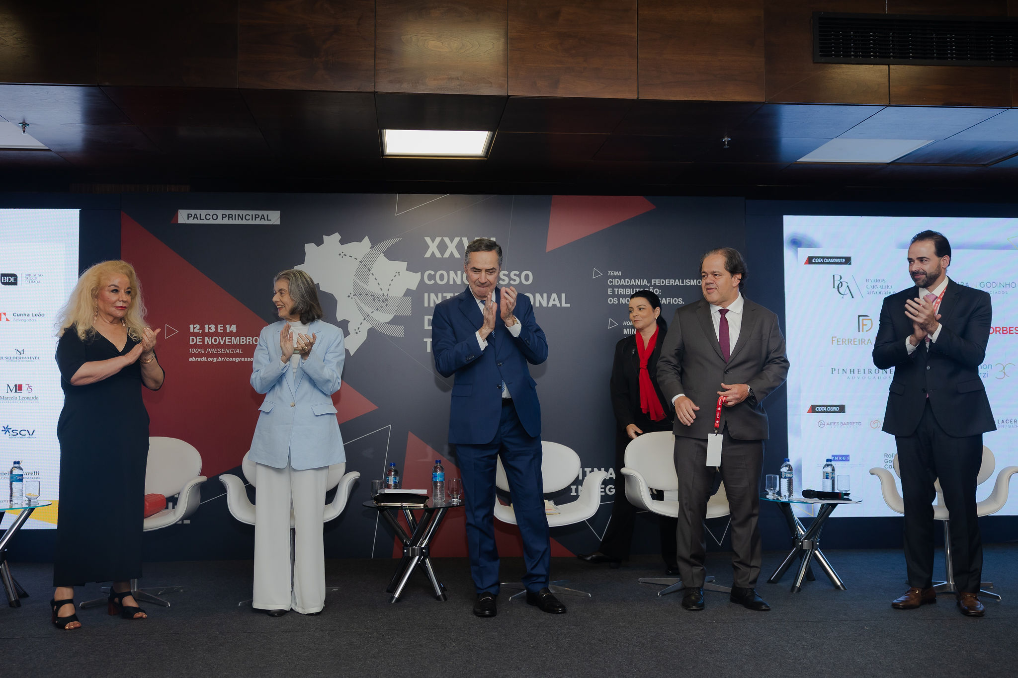 O encerramento do Congresso reuniu, em conferência final, a ministra Cármen Lúcia, o ministro Luís Roberto Barroso e o presidente honorário da Abradt, Valter Lobato, além da presidente Misabel Derzi, em uma discussão marcada por reflexões sobre tecnologia, democracia e os desafios do sistema tributário diante das profundas transformações sociais. Em sua fala, a ministra Cármen Lúcia ressaltou o papel da informação e da educação jurídica na consolidação democrática. “A democracia pressupõe que todos saibam do que se está tratando. E informação é essencial para isso”, afirmou, destacando o compromisso institucional com a transparência e o debate público qualificado.