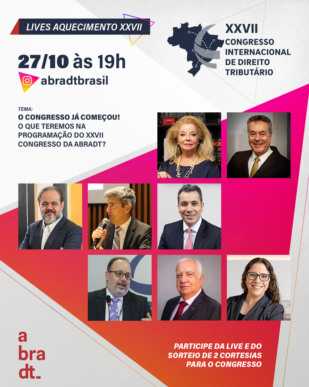 Participe da live, explore a programação e prepare-se para três dias intensos de debates que prometem trazer soluções concretas para os desafios tributários do país. Acesse abradt.org.br/congresso para mais informações e para assegurar sua participação neste grande encontro.