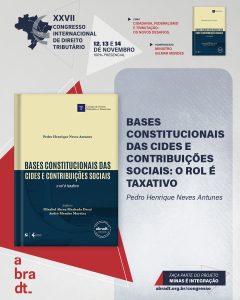 XXVII Congresso da Abradt Lançamento da obra “Bases Constitucionais das CIDES e Contribuições Sociais: O Rol é Taxativo”, do autor Pedro Henrique Neves Antunes durante o XXVII Congresso da Abradt Leia mais »