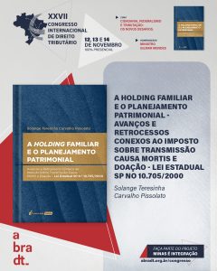 XXVII Congresso da Abradt Lançamento da obra “A HOLDING FAMILIAR E O PLANEJAMENTO PATRIMONIAL de Solange Teresinha Carvalho Pissolato durante o XXVII Congresso da Abradt Leia mais »